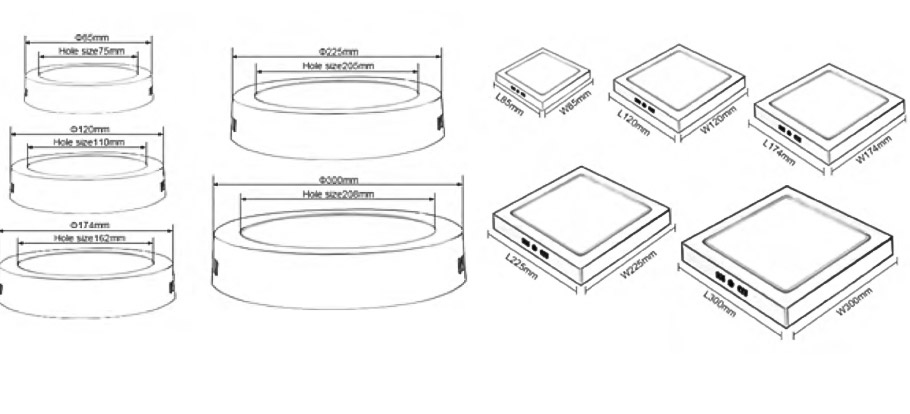 | SL-MZO18 | 18W | Φ225 | 225×225 | ||||